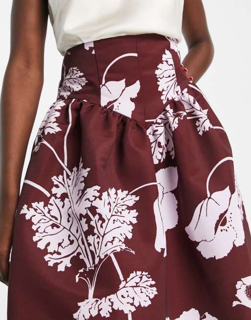 Asos Design Corset Waist Midi Skirt In Purple Floral Print Asos